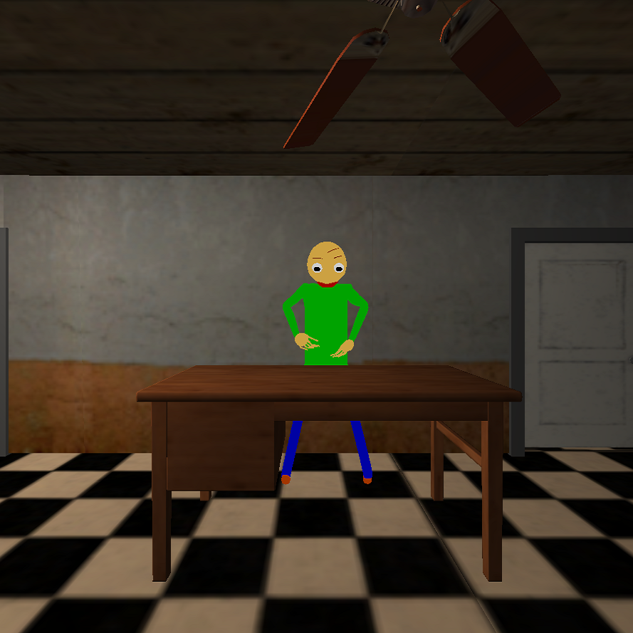 As soon as you enter the reception, you will meet your old math teacher, Baldi. After checking in on the second floor, you are advised to go to bed to start a new day. Don't forget to ask where the toilet is; you may need it. When night falls, you fall asleep, and the terrible nightmares will begin to appear.